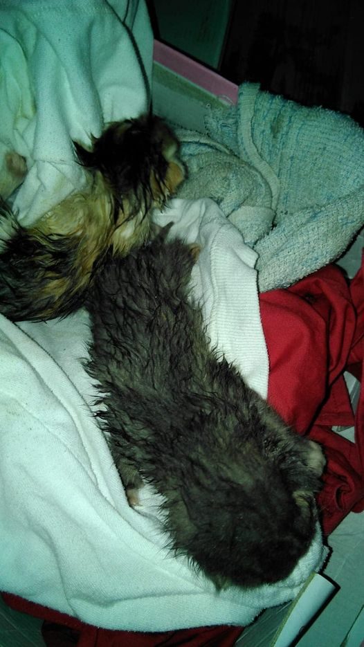 Sin pensarlo dos veces, me bajé de la bicicleta y corrí hacia la escena. Allí estaba ella, una diminuta bola de pelaje gris, con ojos grandes que reflejaban miedo y confusión. La recogí con delicadeza y la coloqué en el triciclo, junto a mis dos compañeros Yorkshire, que, al parecer, entendieron la gravedad de la situación. En un acto de pura bondad, adoptaron a la pequeña como si fuera parte de su familia.